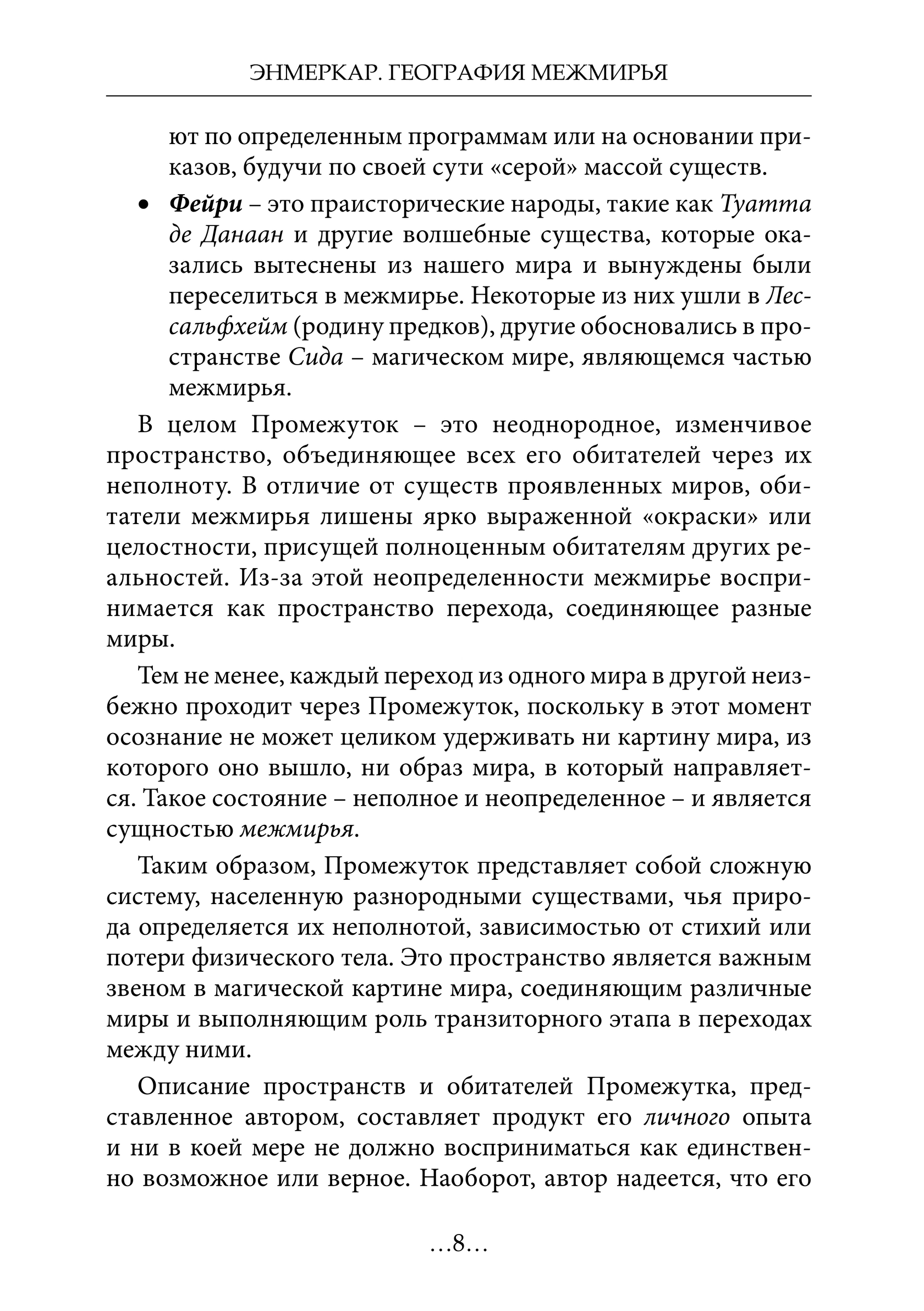 Однако когда в межмирье попадает существо, привычное к человеческому миру или только что утратившее связь с физической оболочкой, например, фейри или недавно обретшие новое бытие элементеры, они продолжают использовать привычные для них формы символического общения. В их сознании эйдосы трансформируются в языковые структуры: звуки, слова, образы, которые накладываются на восприятие как фильтр, чтобы облегчить понимание.